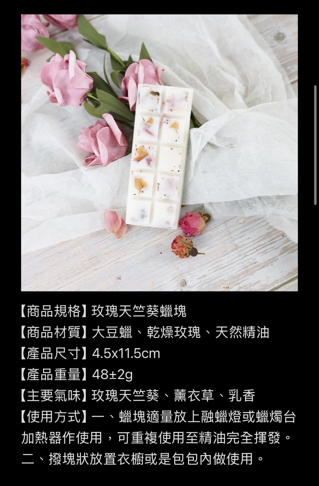 【商品規格】玫瑰天竺葵蠟塊