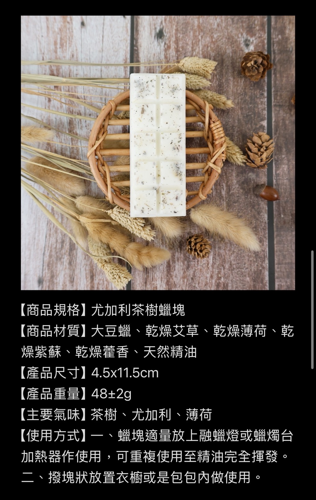 【商品規格】 尤加利茶樹蠟塊